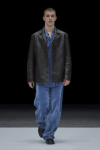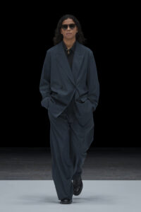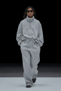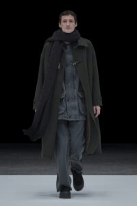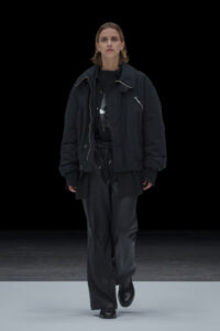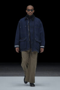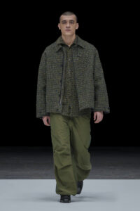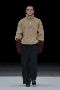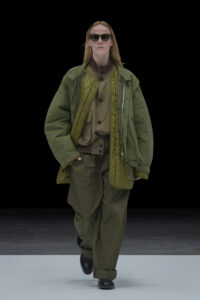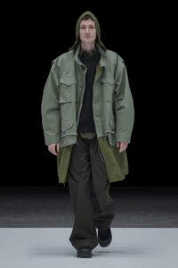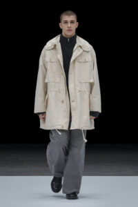 このコレクションはポケットをいくつも配置したアイテムが多く、モデルもパンツのポケットに入れているケースが多い。