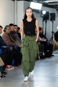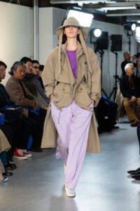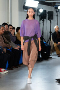 色彩は明るいが鮮やかさよりも優しさを重視したトーンで、スタイルにマッチしていた。透け感のある素材を使用し、視覚的に軽さを演出するアプローチも特徴的だった。