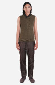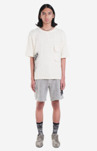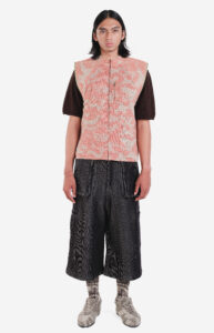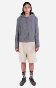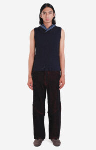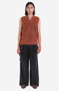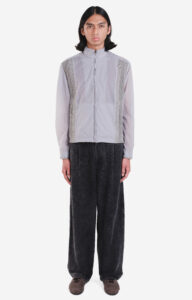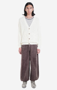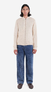 通常は布帛で作られるパンツやブルゾンといったアイテムが、ニットでも作られている。イサ ボールダーはアウトポケットを多用したアイテムが多いため、ワークウェアのイメージが立ち上がっているが、ニット素材で作られたアイテムが多いために、泥臭さが和らいでいる。